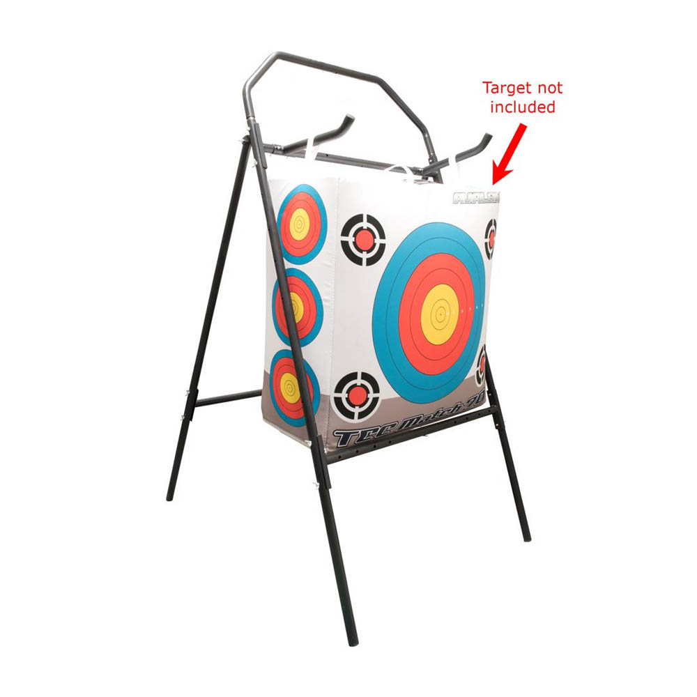 Stevige metalen doelstandaard geschikt voor vrijwel alle doelen vanaf 80cm. Dankzij de meegeleverde haken, welke in positie verstelbaar zijn, kun je zowel foam of stro doelen neerzetten als schietzakken ophangen. Gemaakt van stevig metaal en handig inklapbaar. Wordt gedemonteerd geleverd maar is voorzien van een gebruiksaanwijzing.