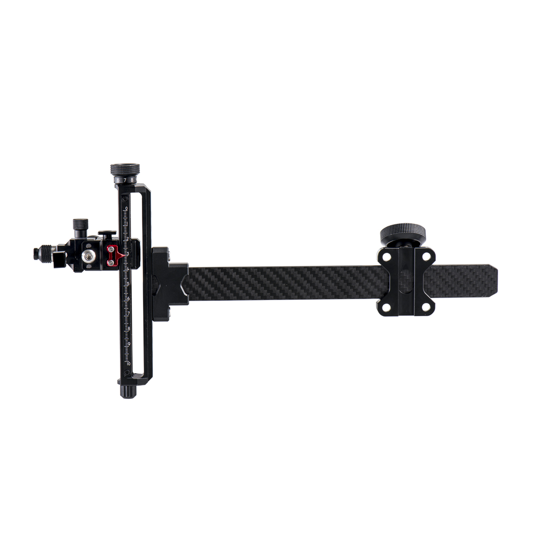 Een micro verstelbaar vizier met een carbon extension bar en een solide mounting systeem. Dit vizier komt in een soft-case en is beschikbaar in links- of rechtshandig. Voor de langdurigheid van het vizier is de speling aan te passen met stelschroeven op de beweegbare assen. Zo gaat het vizier lang mee.