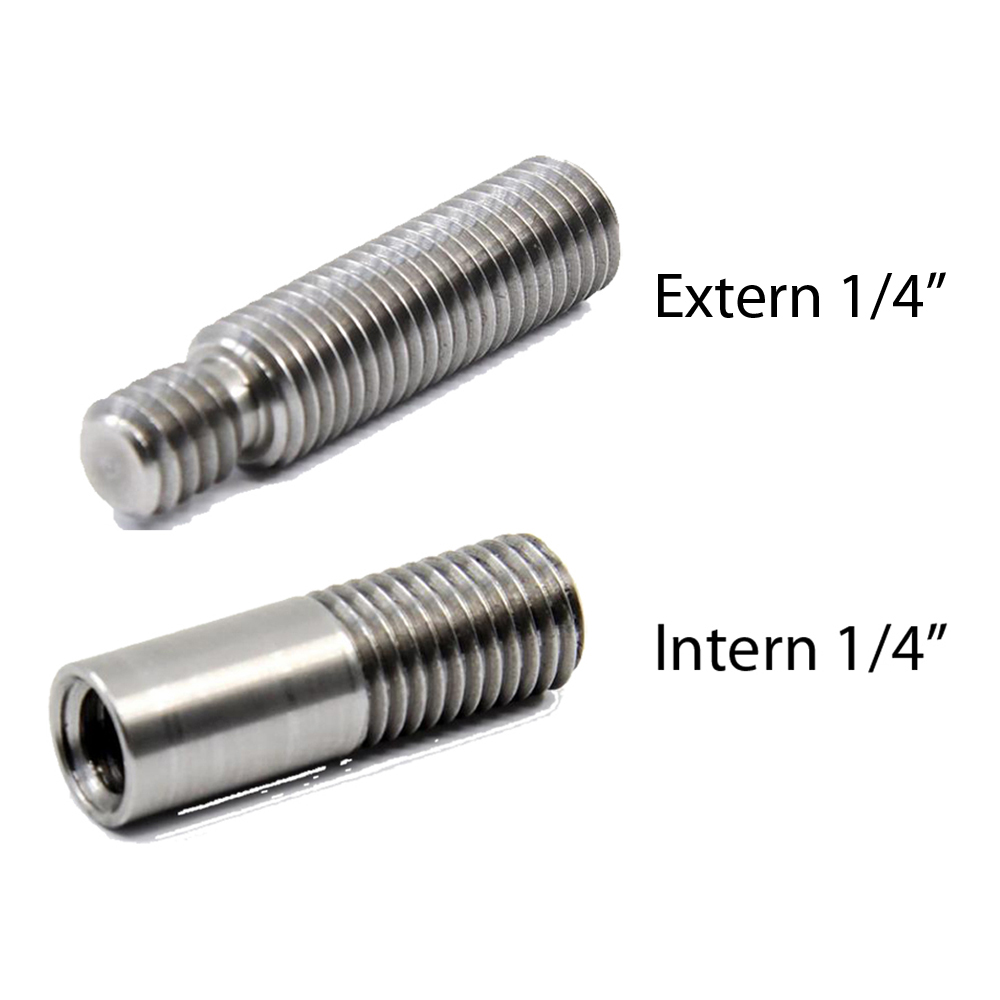 Adapters om je V-Box te kunnen monteren op klein en groot schroefdraad.Eigenschappen Beiter V-Box Adapter SchroefMateriaal: RVSSchroefdraad: 1/4"UNC extern naar 5/16"UNF extern of 1/4"UNC intern naar 5/16"UNF ExternLengtes: 1 inch (25mm) of 2 inch (50mm)