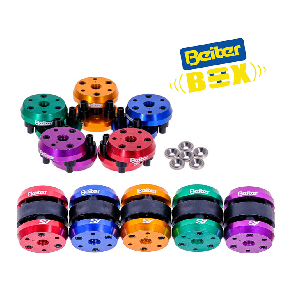 Specificaties Beiter V-Box Damper Starter EditionBeiter V-Box Basic kit incl. Membraan #1 #3 #5 en #73x 1oz V-Box RVS Gewicht8x V-Box Gewicht Spacer in diverse kleuren3x Baseplate 20mm, 23mm en 26mm1x 34mm gewicht schroefKeuze uit 1/4" adapter(klein), 2x 5/16" adapter(groot) of een interne 1/4" adapter(klein)